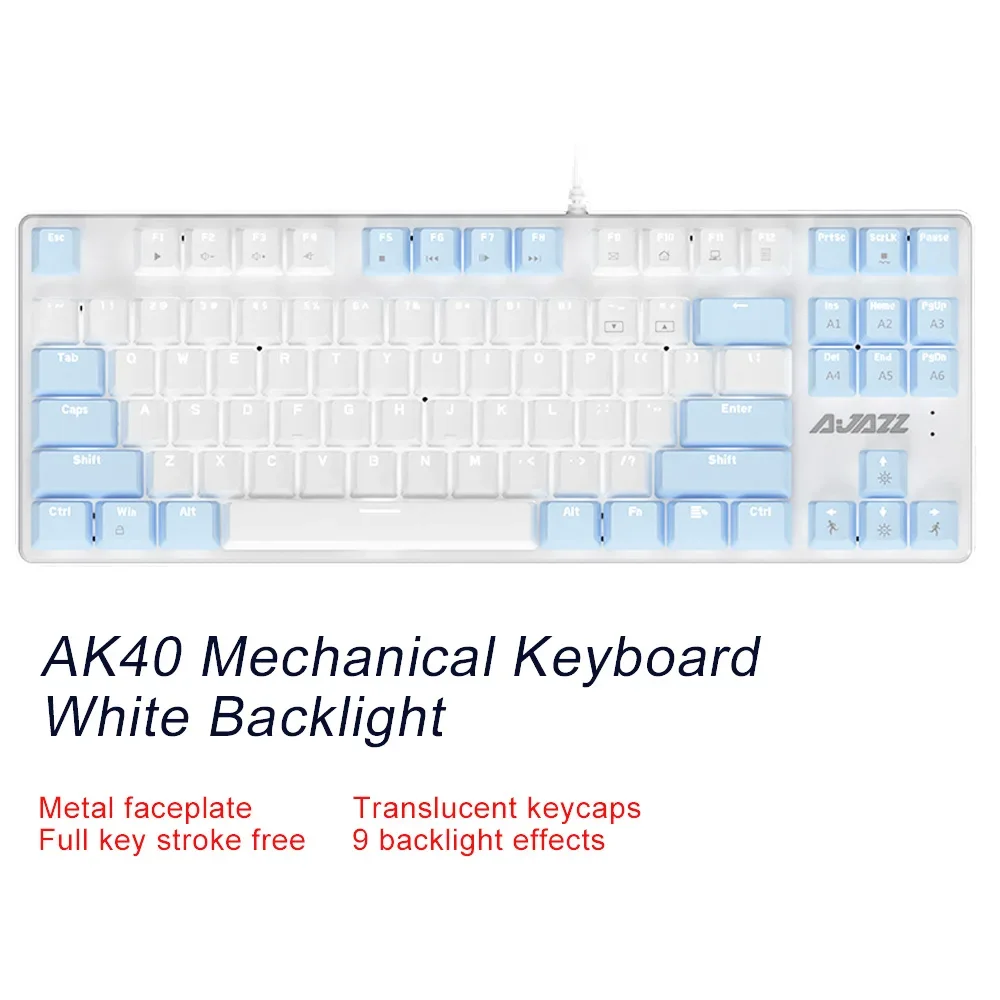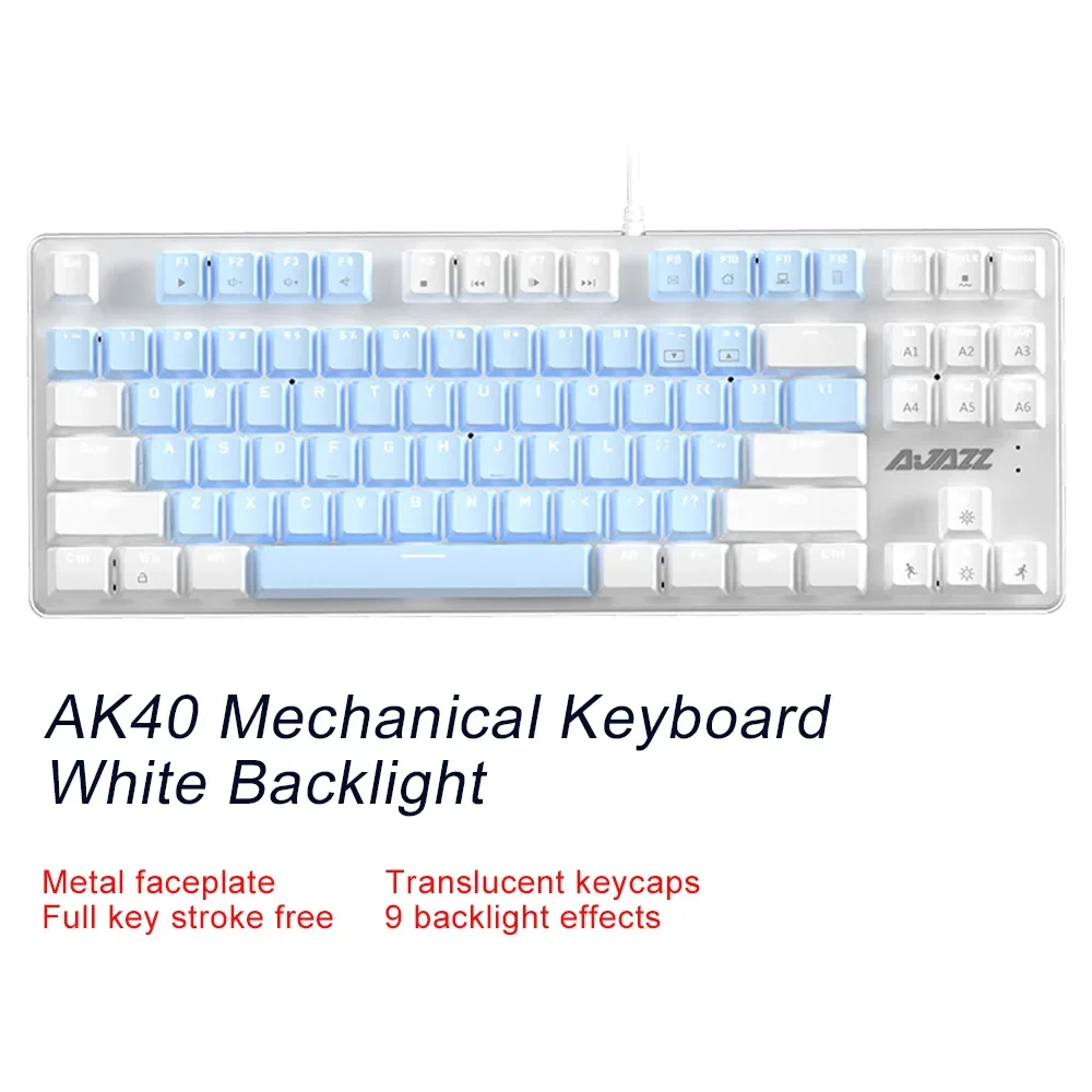 Ajazz AK40 87-Key USB Wired Gaming Mechanical Keyboard with Backlight, Type-C Port, and Blue/Red Switches for PC, Laptop & Desktop