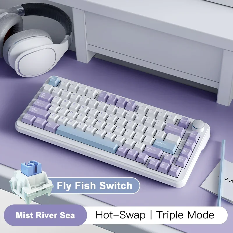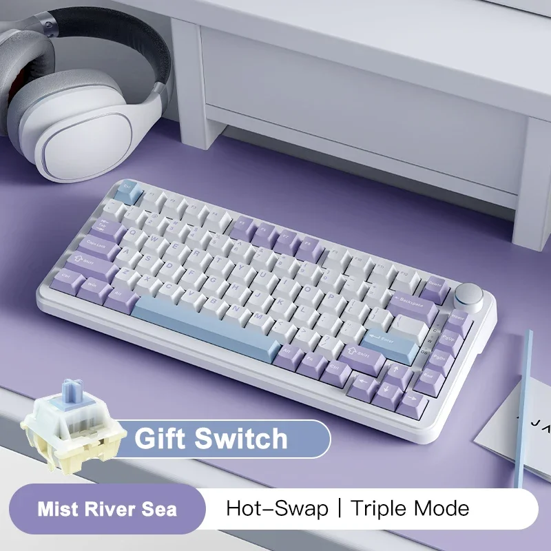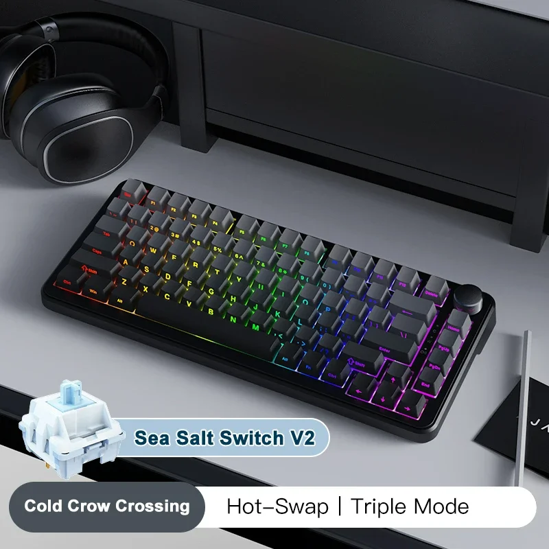 AJAZZ AK820 MAX RGB Gaming Mechanical Keyboard: Tri – mode (Bluetooth, 2.4G), 82 Keys with PBT Keycaps, Hot Swap and Type – C for Gamer PCs