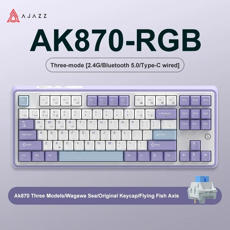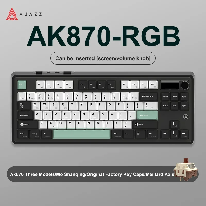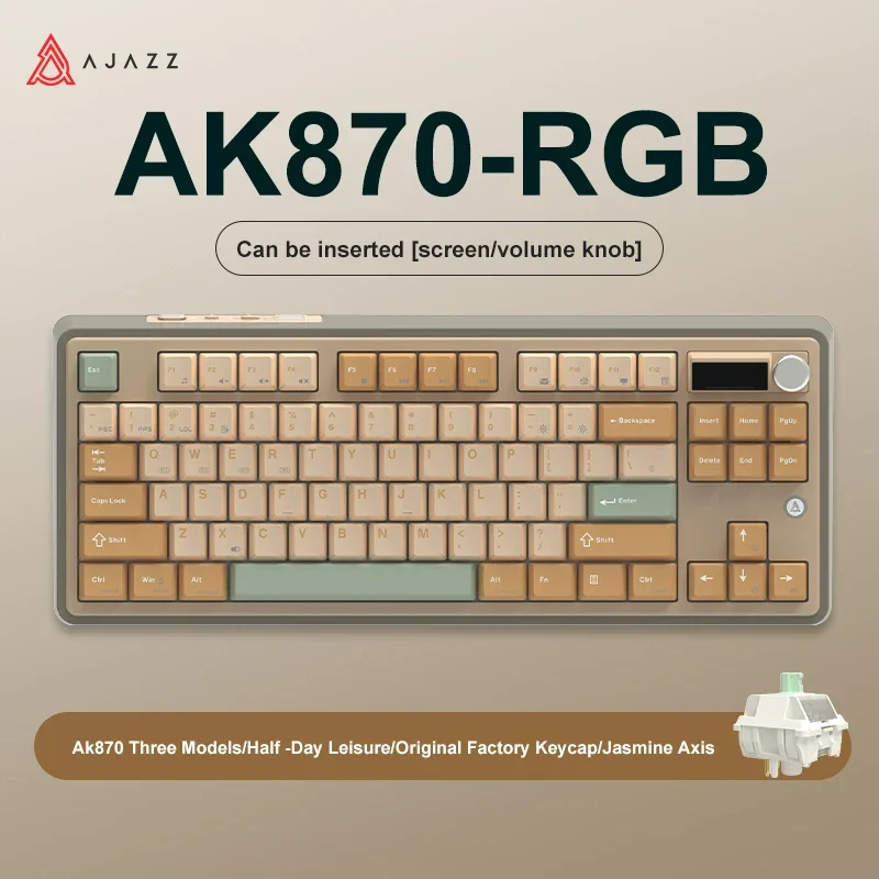 Ajazz Ak870 RGB 84-Key Wireless Bluetooth 2.4G Wired Hot-Swap Gaming Mechanical Keyboard with TFT for Desktop, Laptop, and PC