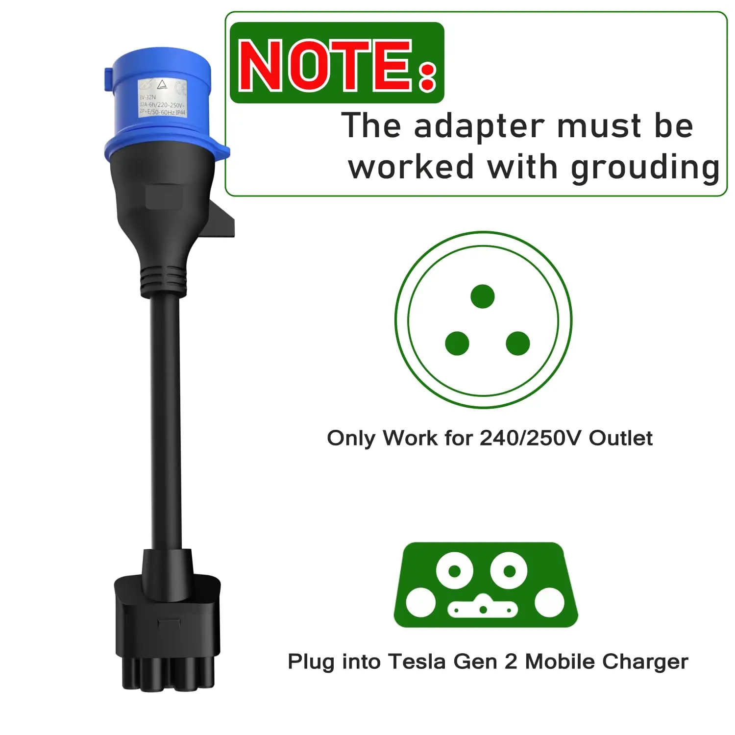 Please note: The Tesla charger requires the connection of a ground cable