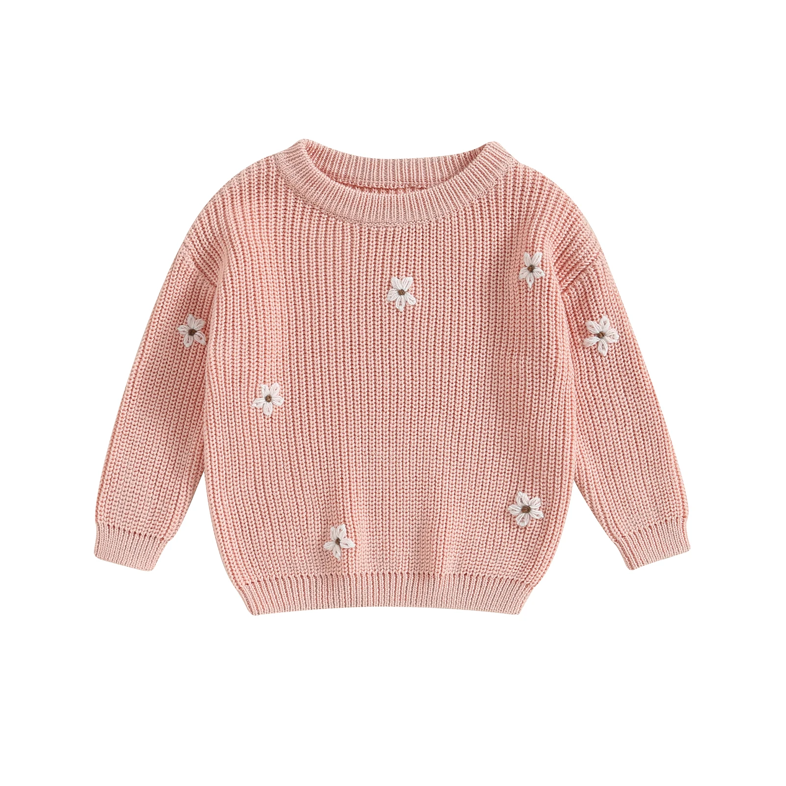 Baby Girl Sweater, Long Sleeve Crew Neck Flower Winter Warm Knit Pullover Sweater Infant Clothes