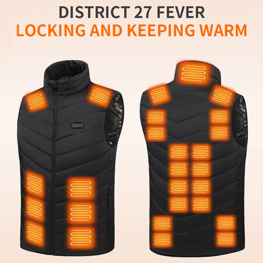 27 Areas Electric Heated Jackets Winter Sportswear Heated Coat Outdoor Warm Vest for Men and Women Outdoor Skiing Hiking